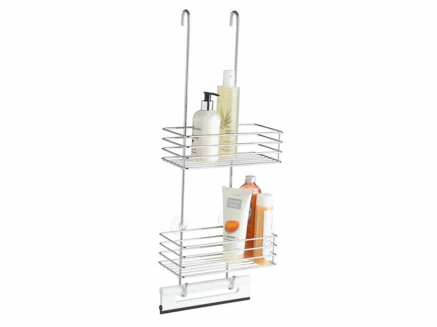 Der Duschkorb aus verchromtem Edelstahl bietet viel Platz für Duschutensilien und überzeugt mit einem eleganten Design.