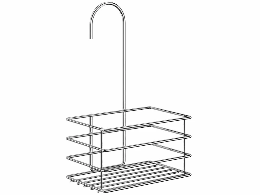 Der Duschkorb aus verchromtem Edelstahl bietet viel Platz für Duschutensilien und überzeugt mit einem eleganten Design.