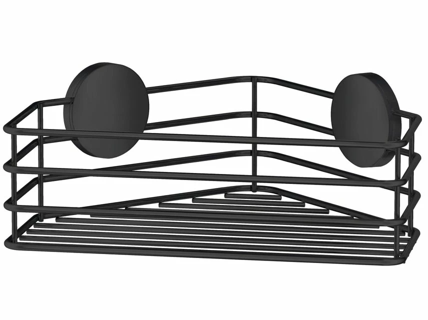 Der Eckduschkorb aus verchromtem Edelstahl in elegantem Schwarz bietet viel Platz für Duschutensilien und überzeugt mit seinem formschönen Design.