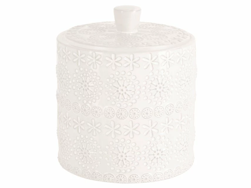 Im Badezimmer gibt es allerlei Kleinigkeiten zu verwahren, die Kosmetikdose Relief aus Porzellan bietet Platz für modische Accessoires, Schmuck, Kosmetik und mehr. Optisch sorgt sie zudem für einen hübschen Blickfang im heimischen Wellnessbereich.