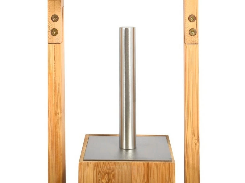 Der Ständer, die Bürste und die Papierrollen-Verkleidung bestehen aus Bambus, der wasserdicht und feuchtigkeitsbeständig ist. Der stabile Standfuß sorgt für einen sicheren Stand. Der offene Bürstenhalter verfügt über einen herausnehmbaren inneren Kunststoffbehälter, der die Reinigung und den Wechsel erleichtert.