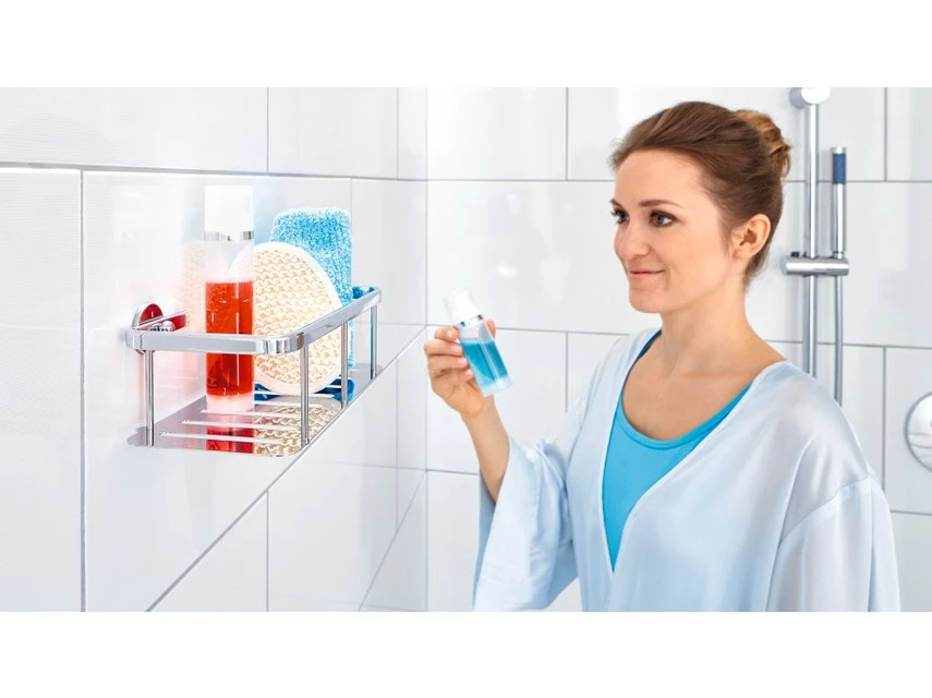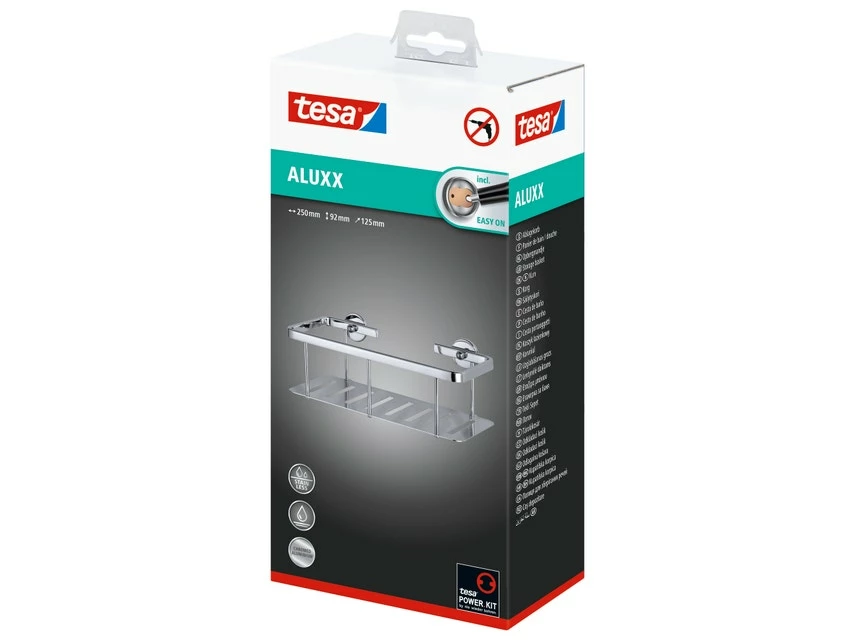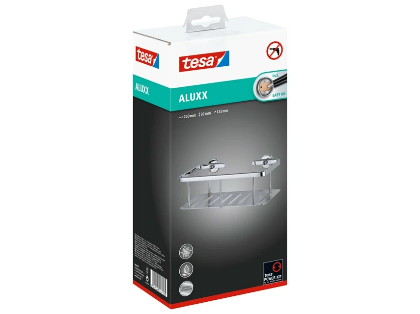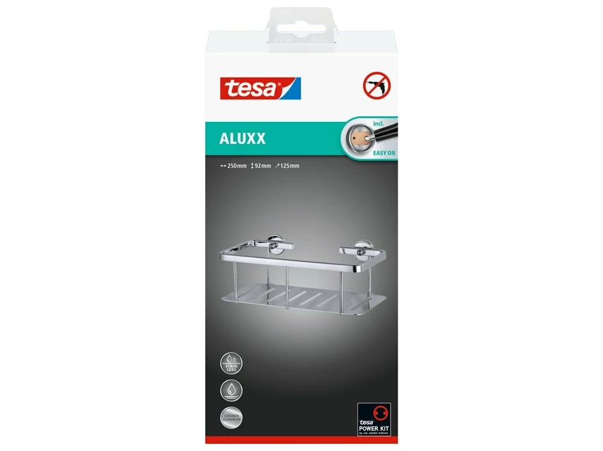 Die tesa® ALUXX Duschablage lässt sich dank starker Klebelösung ohne Bohren unter der Dusche (oder über der Badewanne) befestigen. Mit ihrem klassisch-eleganten Design ist sie eine Bereicherung für jedes Bad. Die Duschablage kann jederzeit abgelöst und sogar wiederverwendet werden.