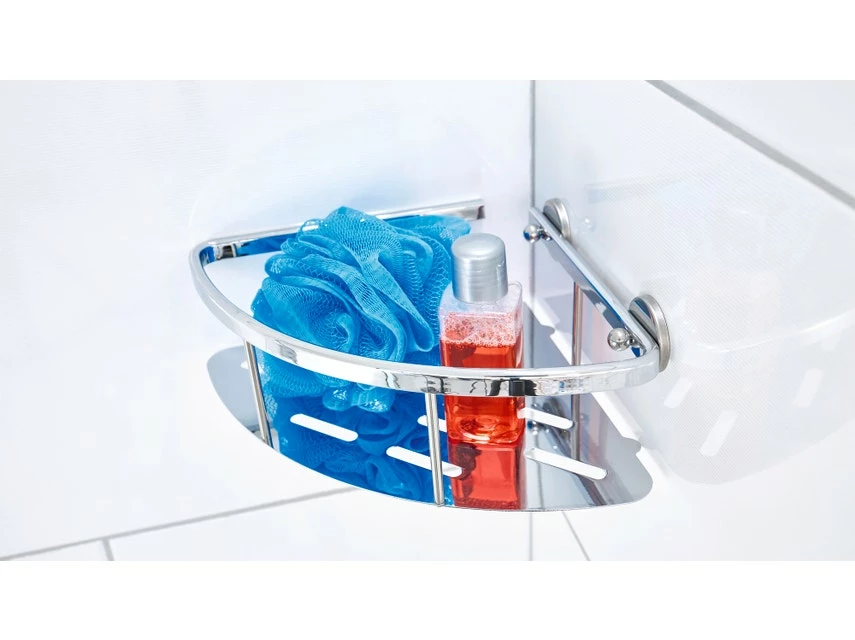 Die elegante tesa® ALUXX Eckablage für die Dusche kann dank Klebelösung bequem ohne Bohren befestigt werden. Mit ihrem tiefen Boden bietet sie viel Platz und einen sicheren Stand für Duschgels und Shampoos. Die Eckablage kann jederzeit abgelöst und mit einem neuen Adapter wiederverwendet werden.