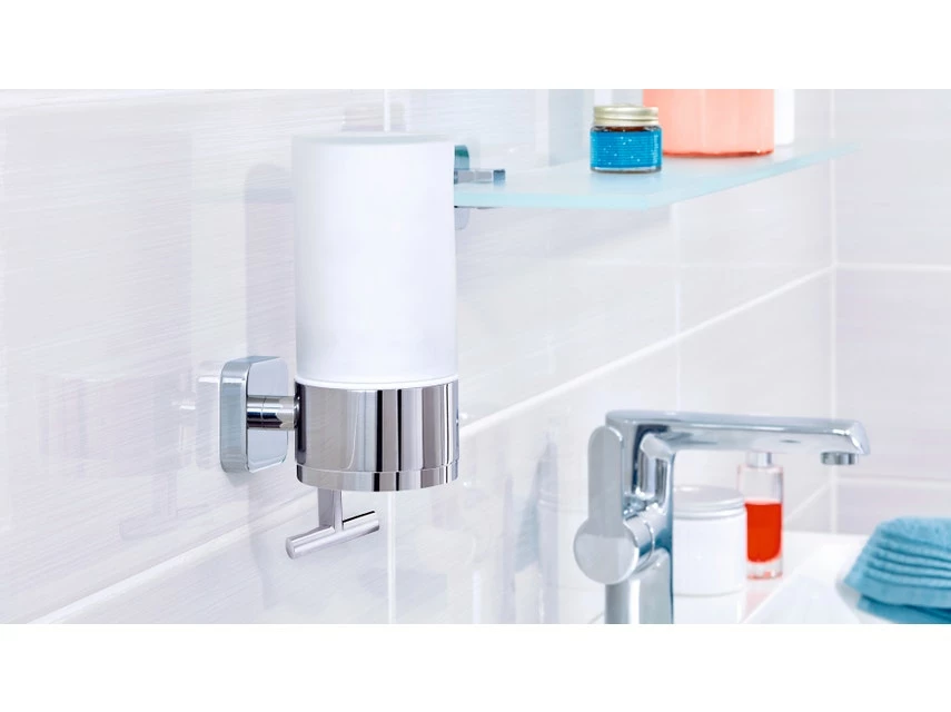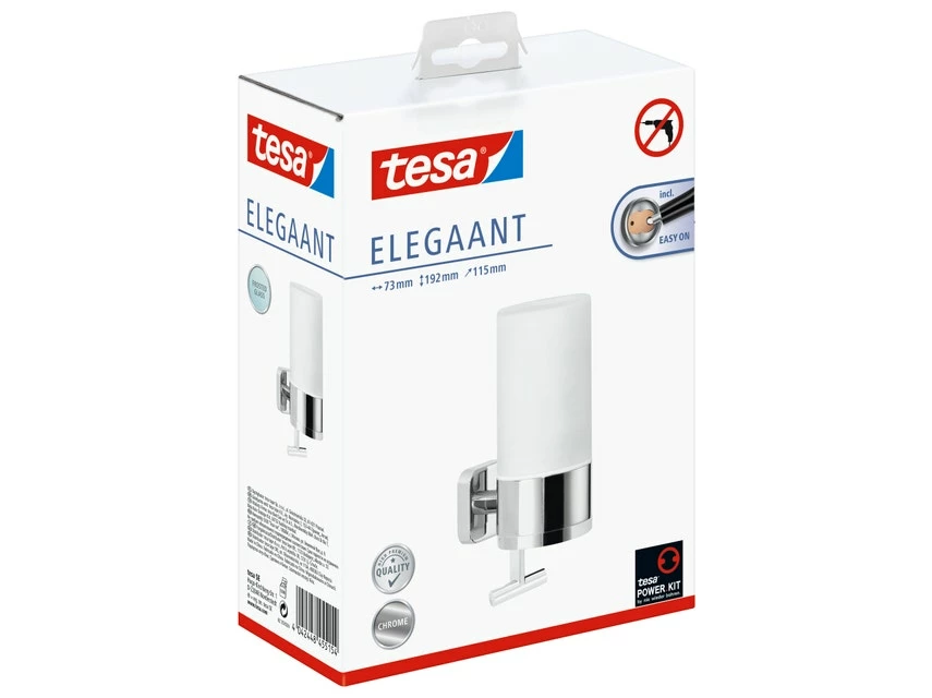 Der tesa® ELEGAANT Design-Seifenspender wird ohne Bohren an der Wand befestigt. Dadurch entstehen keine Schäden am Untergrund. Befestigungsadapter und Klebmasse sorgen für einen starken Halt. Sie können den Seifenspender jederzeit entfernen und mit einem neuen Adapter wiederverwenden.