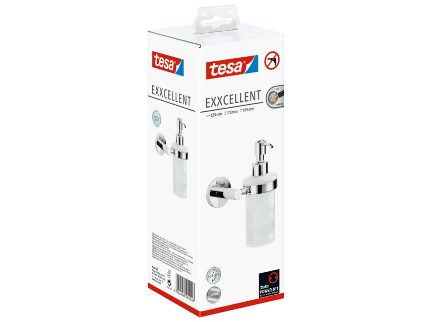 Der praktische und elegante tesa® EXXCELLENT Seifenspender kann dank Klebelösung ohne Bohren an der Wand befestigen werden. Sie können den Seifenspender jederzeit wieder entfernen und mit einem neuen Befestigungsadapter wiederverwenden.