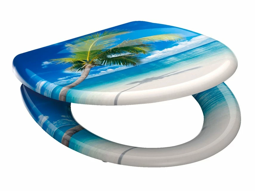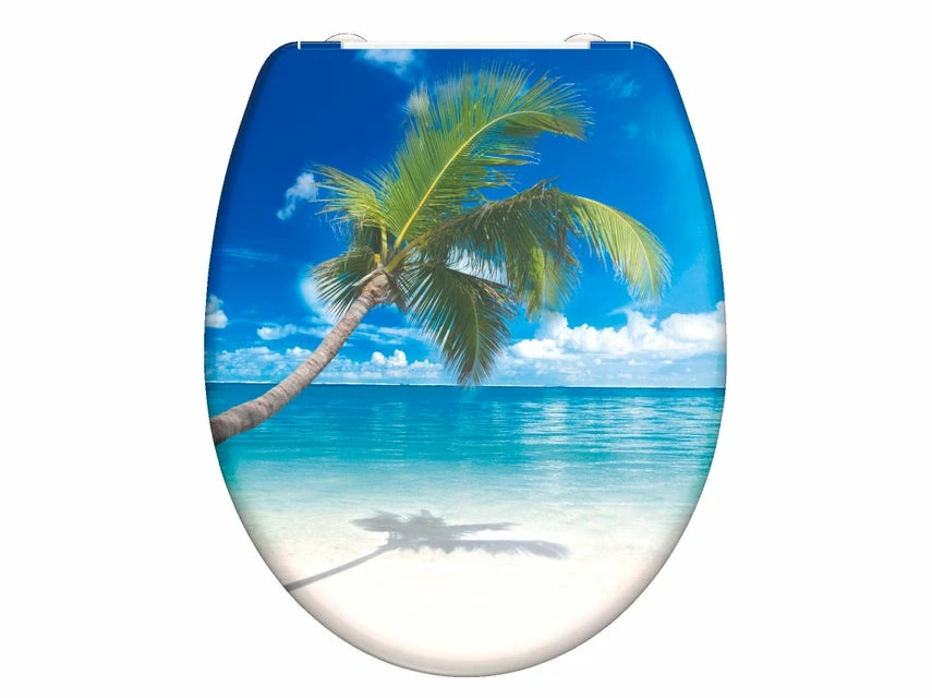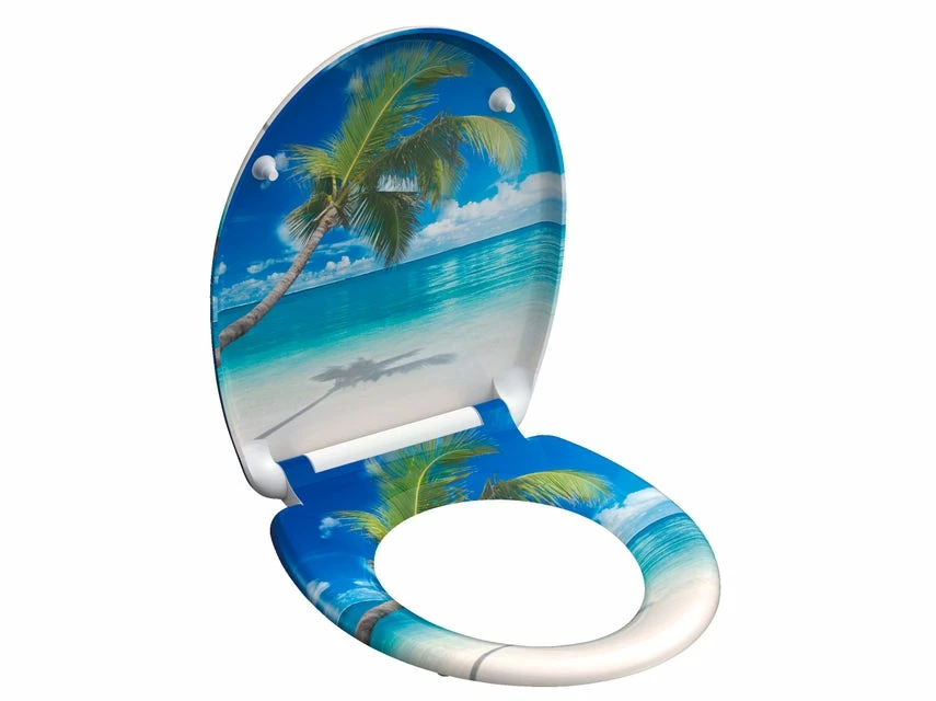 Der WC-Sitz „Caribbean“ hat einfach ein tolles Motiv. Der Sitz besteht aus qualitativem, bedrucktem Duroplast. Der WC-Sitz ist sehr einfach an der Toilette zu montieren. Er ist außerdem ausgestattet mit einer Absenkautomatik.