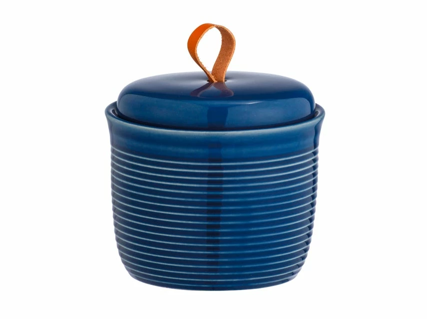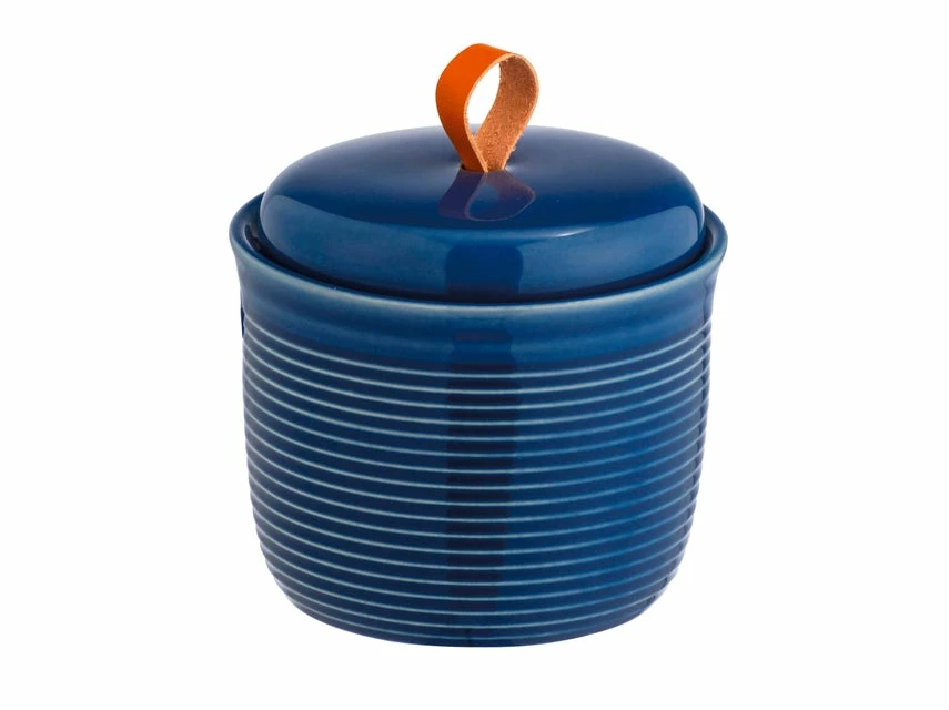 Marineblaues Interieur: Die in Dunkelblau gehaltenen Badaccessoires überzeugen in schönen Formen, kombiniert mit einer strukturierten Oberfläche. Sie fügen sich elegant in Ihre bestehende Badezimmereinrichtung ein. Für einen sensationellen Kontrast sorgt die in braun gehaltene Schlaufe oberhalb des Dosendeckels – ein absoluter Blickfang in Bad und Gäste-WC sowie in der Küche oder auf dem Schminktisch.