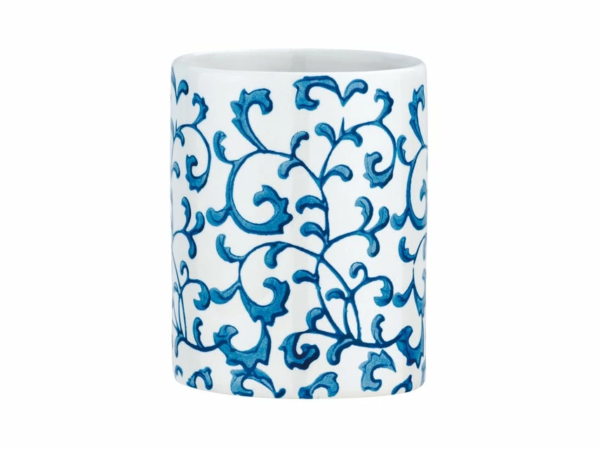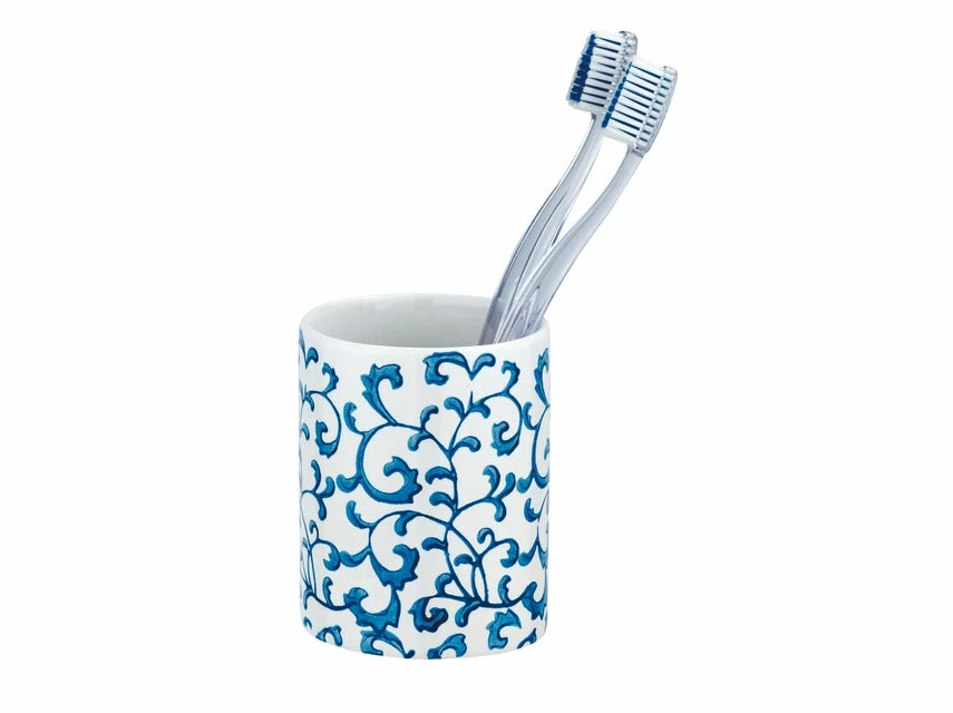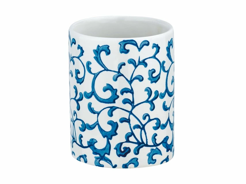 Bezauberndes Design: Für Ihre Wohlfühl-Oase nur das Beste – der weiße Zahnputzbecher mit blauen, floralen Verzierungen setzt charmante Akzente in Ihrem Badezimmer & Gäste-WC