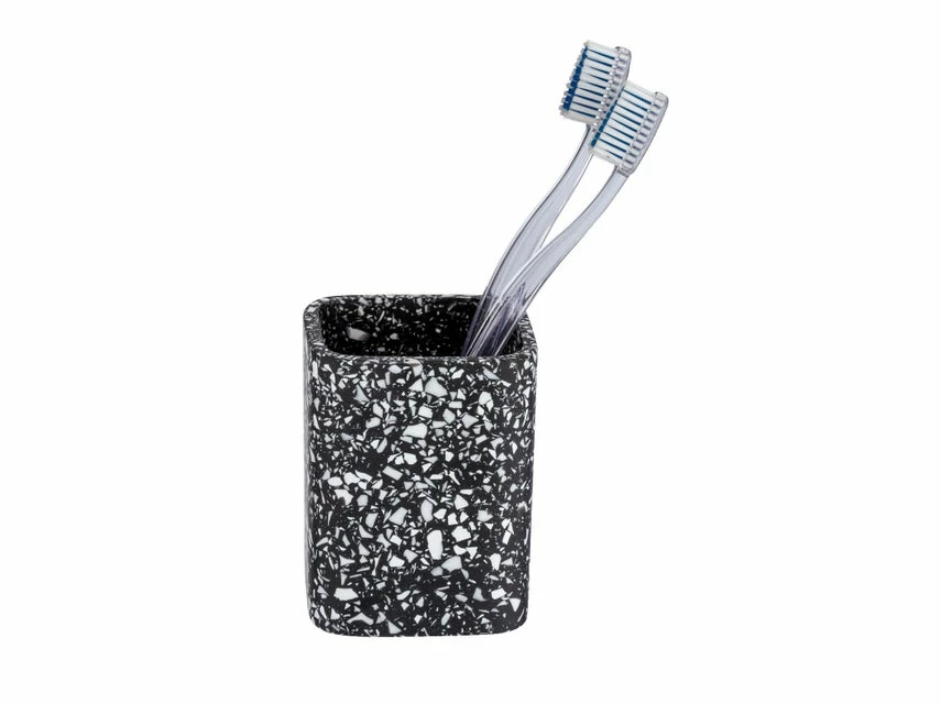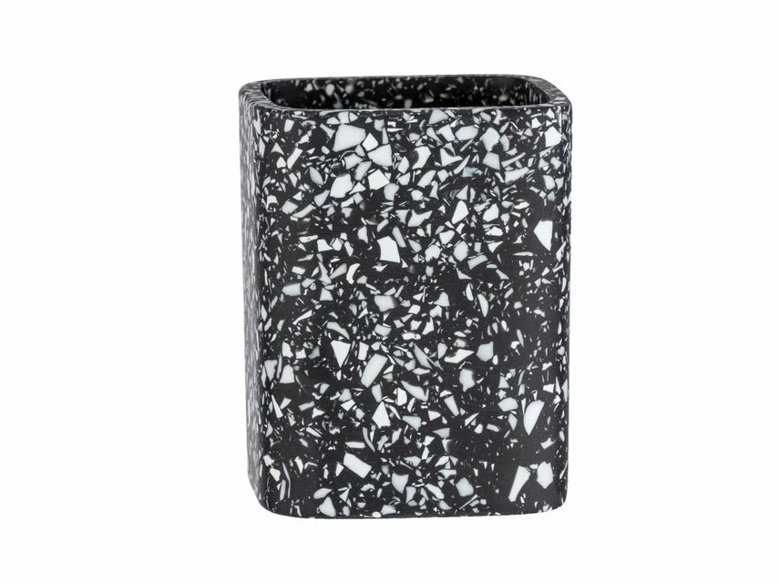 Black is beautiful: Dramatische und zugleich edle Kontraste zaubert die Serie Terrazzo von WENKO in absolut jedes Badezimmer! Das schöne Accessoire der Serie ist in kantigem Design gehalten. Harmonisch gestaltet, fügt sich das Bad-Zubehör so bestens in verschiedene Bäder ein und kann wirkungsvoll auf dem Waschbecken oder praktisch im Badezimmerschrank stehen.