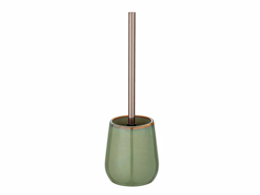 Die Zeichen stehen auf Grün mit der WC-Bürstengarnitur Sirmione von WENKO. Das Accessoire strahlt Vertrauen und die Macht der lebensspendenden Natur aus. Hinzukommen Highlights in Kupfer, dieser Farbton fängt die Qualitäten von Braun ein und ist daher erdiger, natürlicher und reifer. Die geschmackvolle Stand WC-Garnitur lässt sich flexibel im Raum positionieren, auch in Nischen von kleineren Bädern. Auf diese Weise haben Sie die WC-Bürste stets praktisch zur Hand. Im Gäste-WC setzt die Standgarnitur ebenfalls atemberaubende Highlights. Der Stiel der Standgarnitur ist aus hochwertigem Kunststoff gefertigt, ebenso wie der robuste Bürstenkopf in Schwarz.